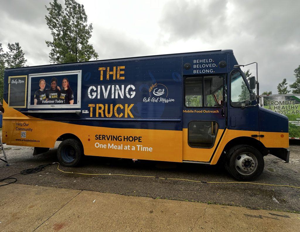 The Giving Truck is Ark Aid Mission’s mobile food truck in London, Ontario that brings delicious food and meaningful impact directly to your event. When you book The Giving Truck for your next event, you’re not only feeding your guests — you’re helping support vital programs that serve people experiencing homelessness and deep poverty in our community.